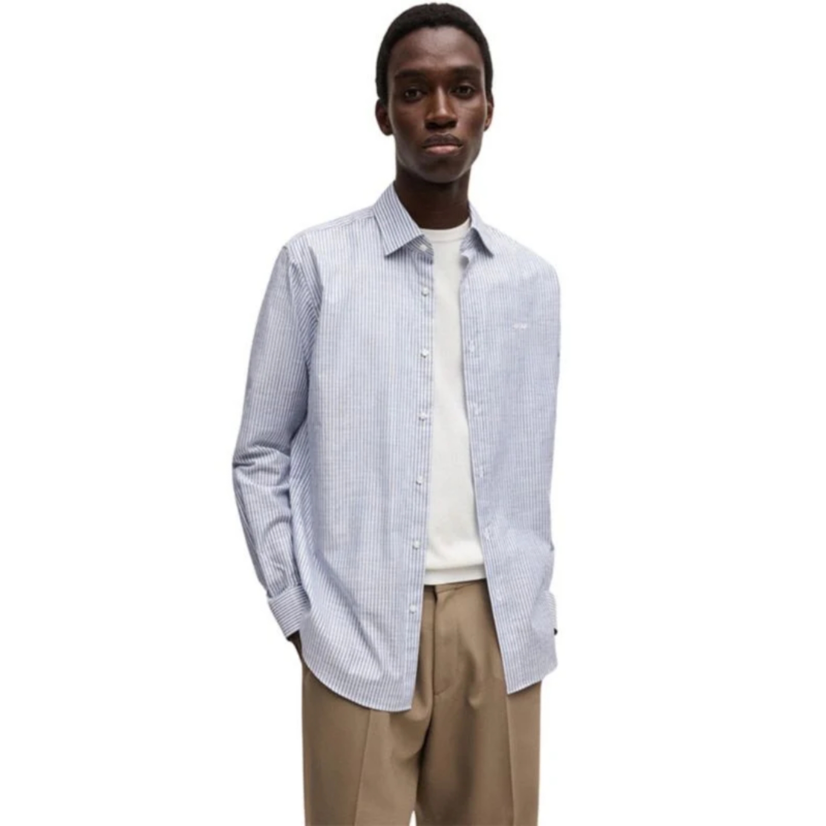 HUGO Valerio prugasta muška košulja od pamuka. Svetloplava boja sa logo detaljem.